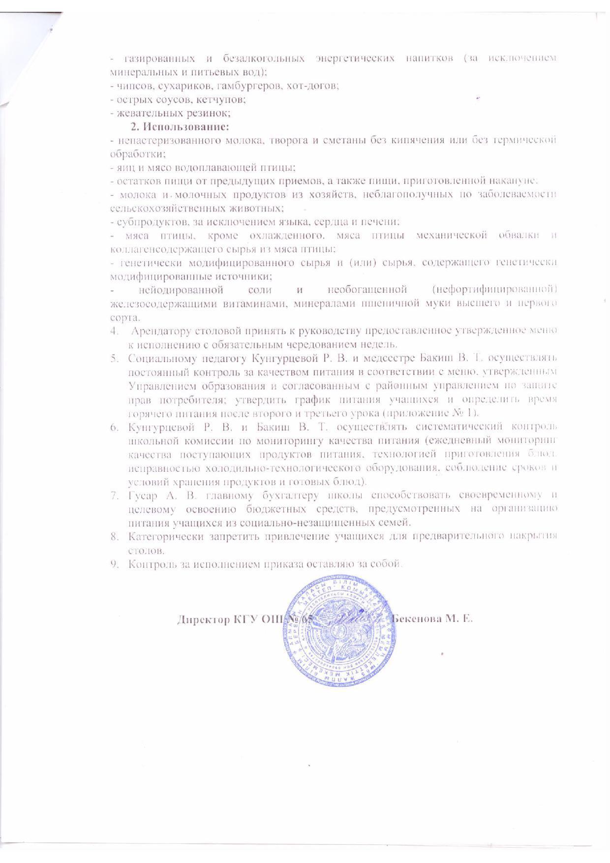 Приказ на г/питание