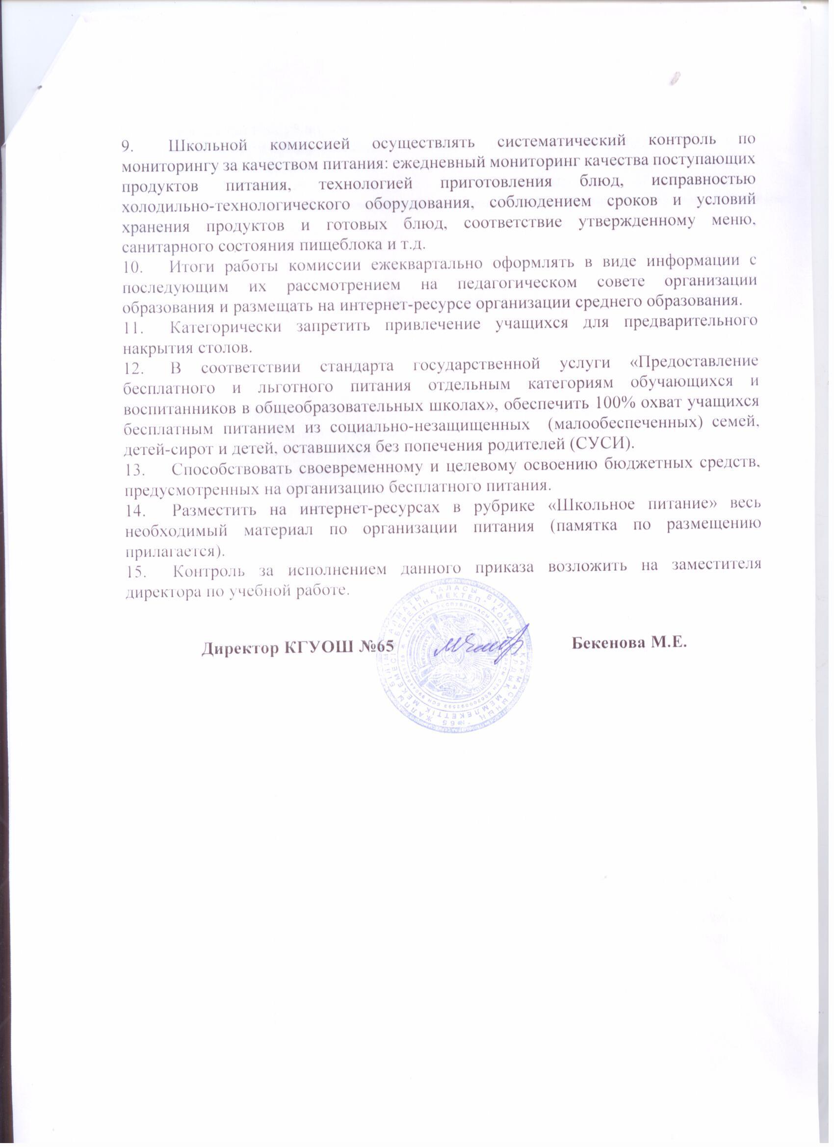 «О создании комиссии по мониторингу за качеством питания» на 2020-2021 учебный год