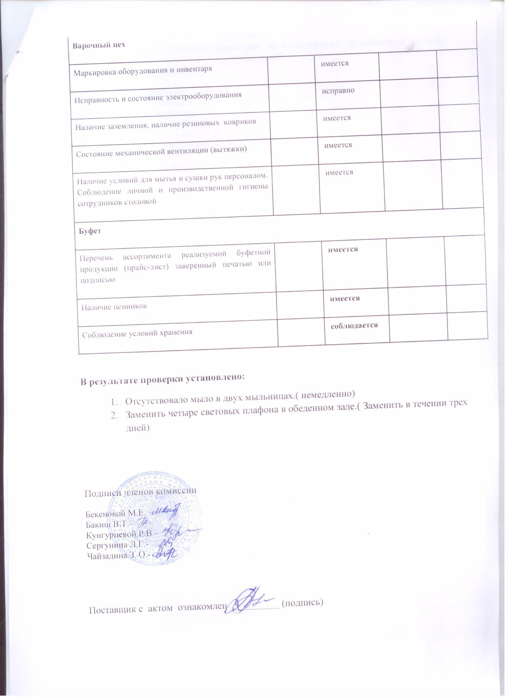 » Акт проверки школьной столовой за ноябрь 2021г