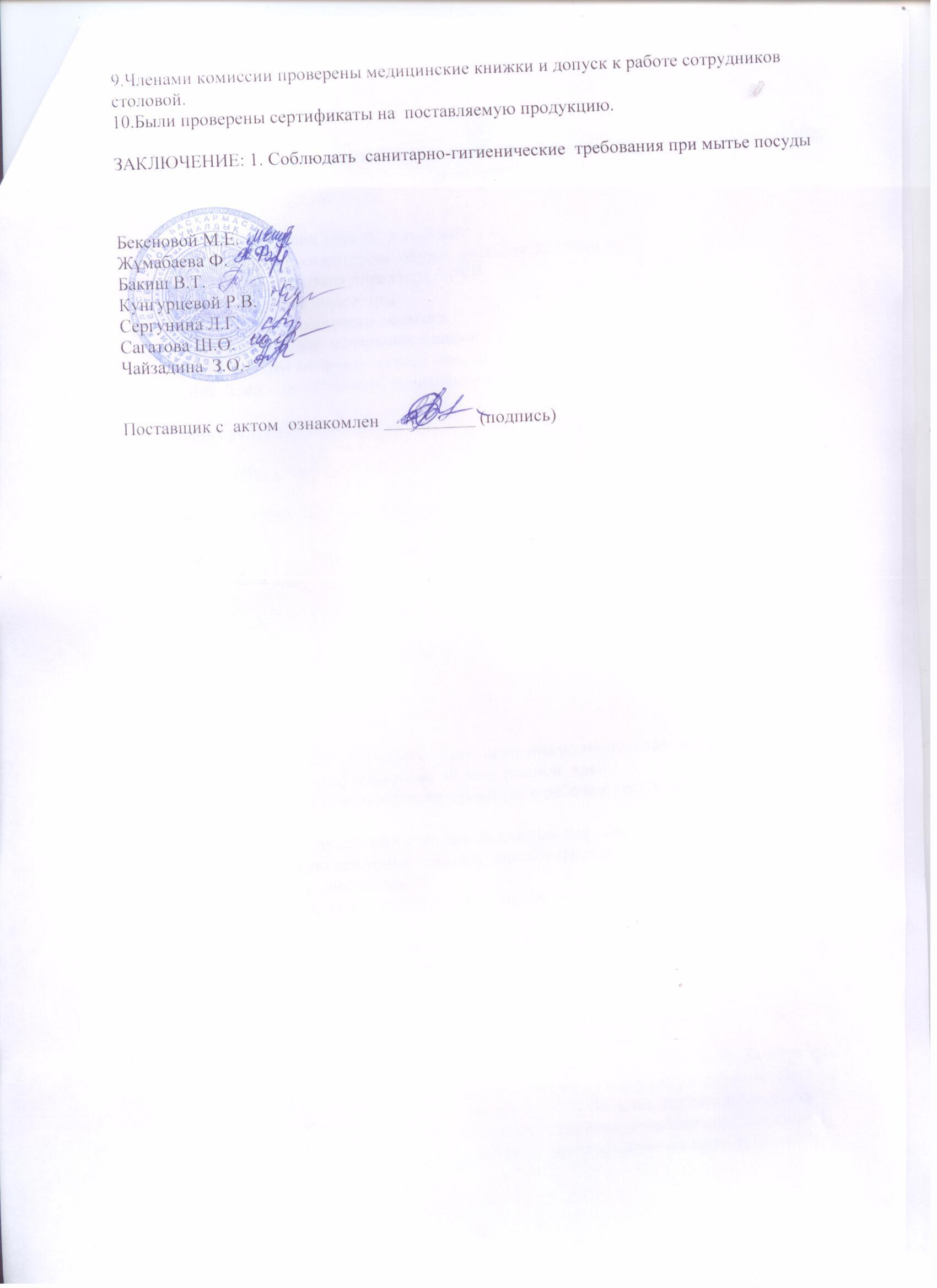 Акт проверки школьной столовой за декабрь 2021г