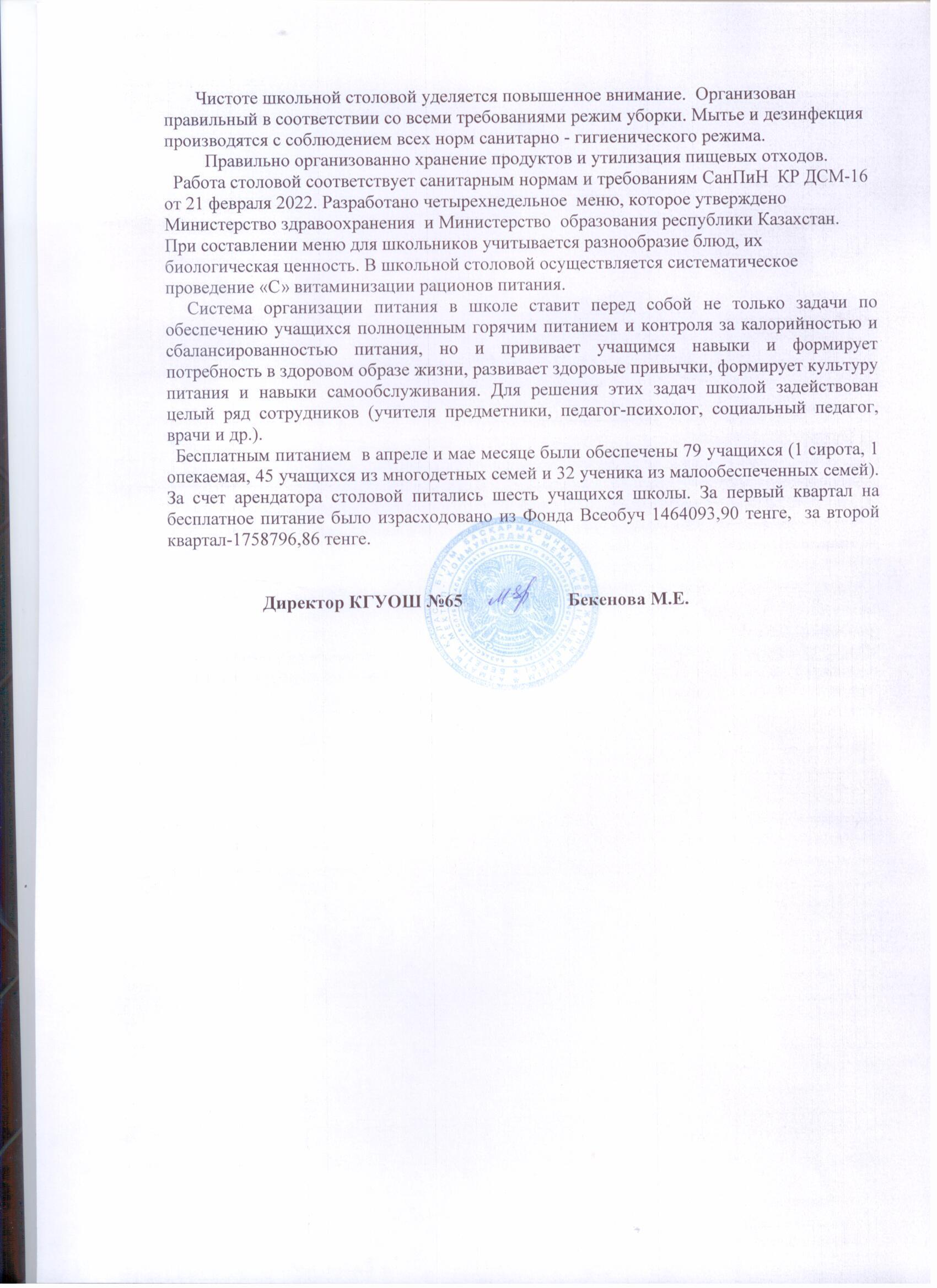 » Отчет по питанию за 2 квартал 2022г.