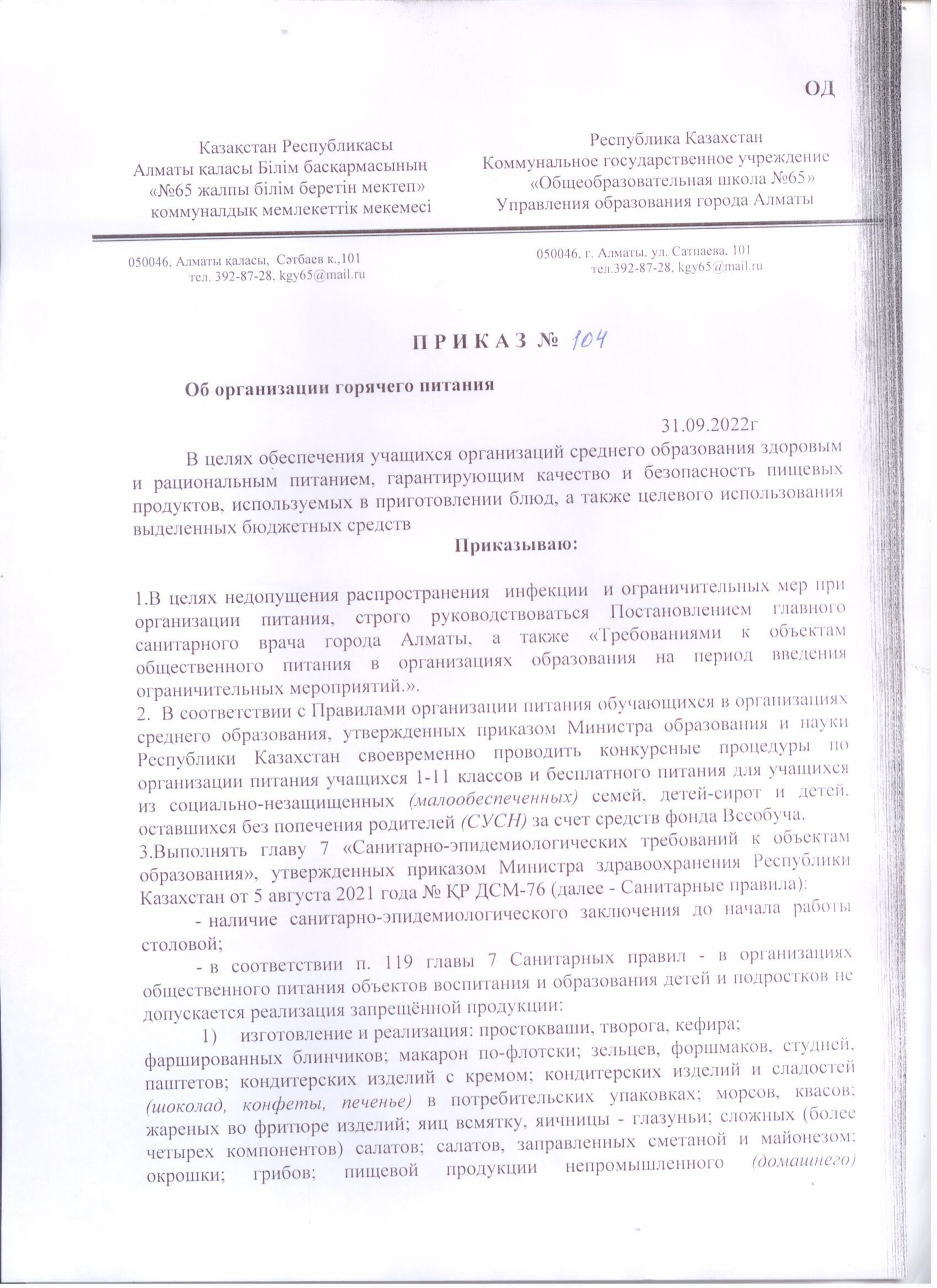 31 тамыз 2022 0 1 2 3 4 5 Ыстық тамақты ұйымдастыру туралы бұйрық-Приказ об организации горячего питания