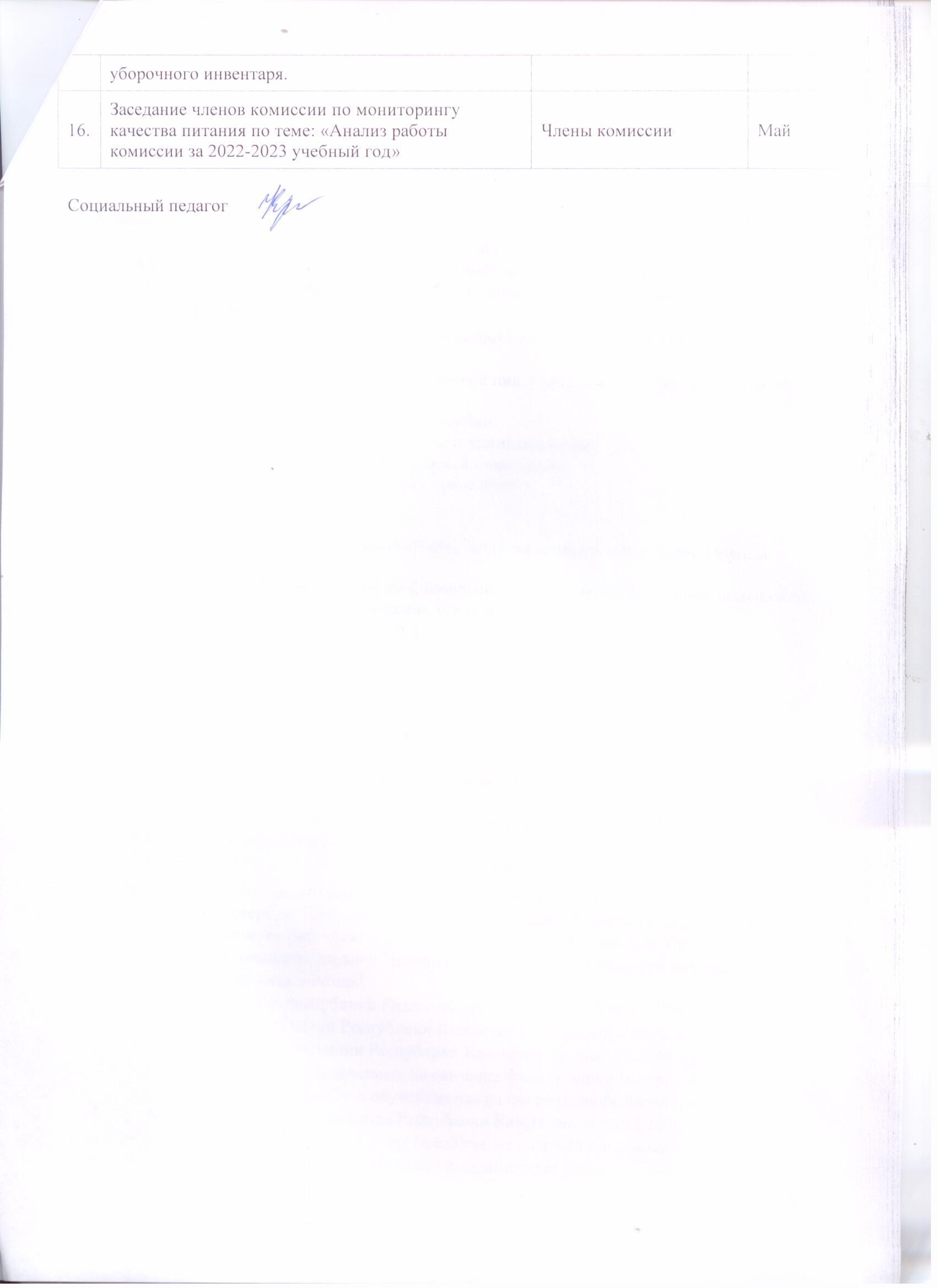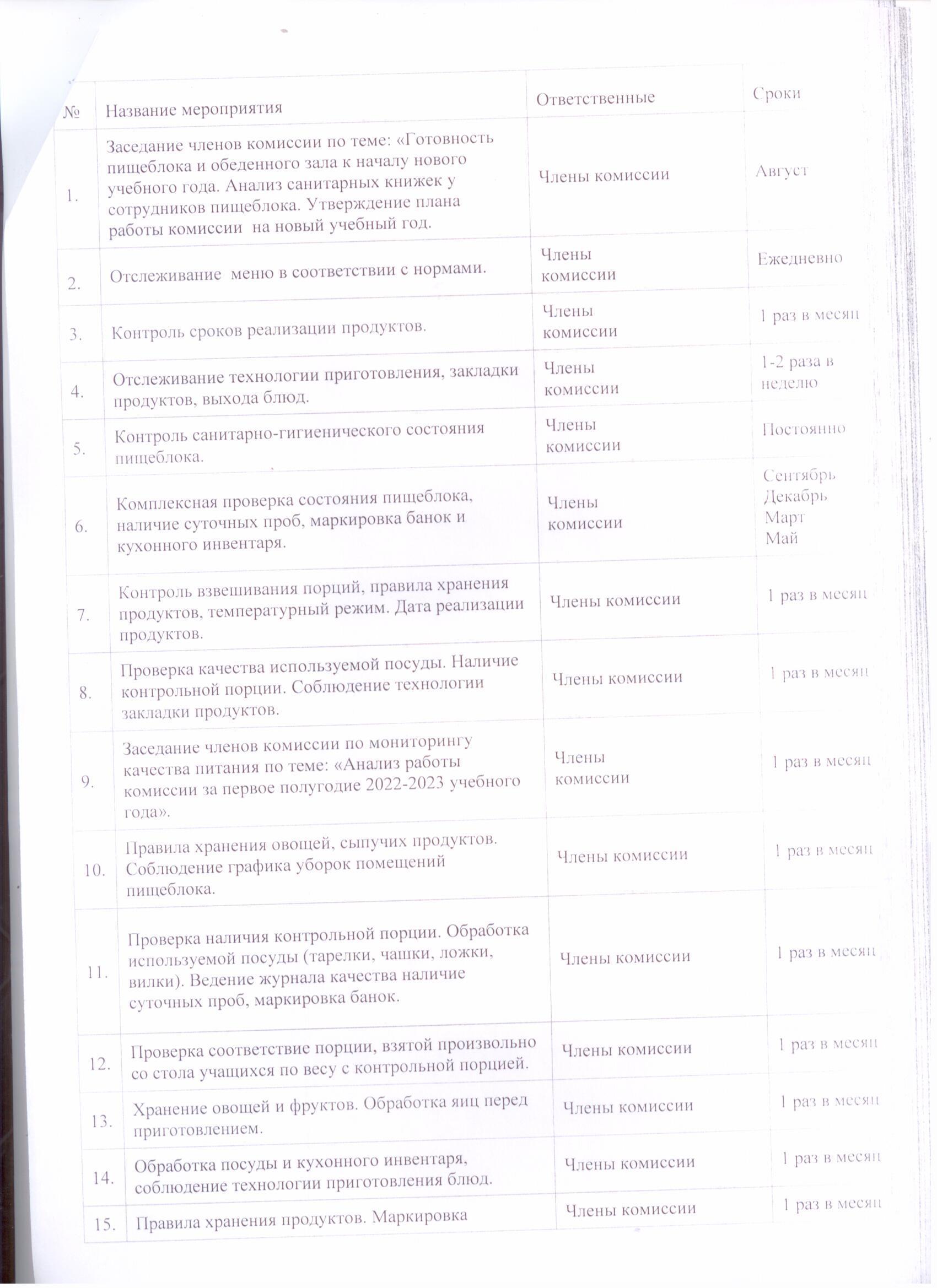 31 тамыз 2022 0 1 2 3 4 5 2022-2023оқу жылыпа №65 ЖББМ КММ тамақтану сапасын бақылау комиссиясының жұмыс жоспары-План работы комиссии по мониторингу качества питания