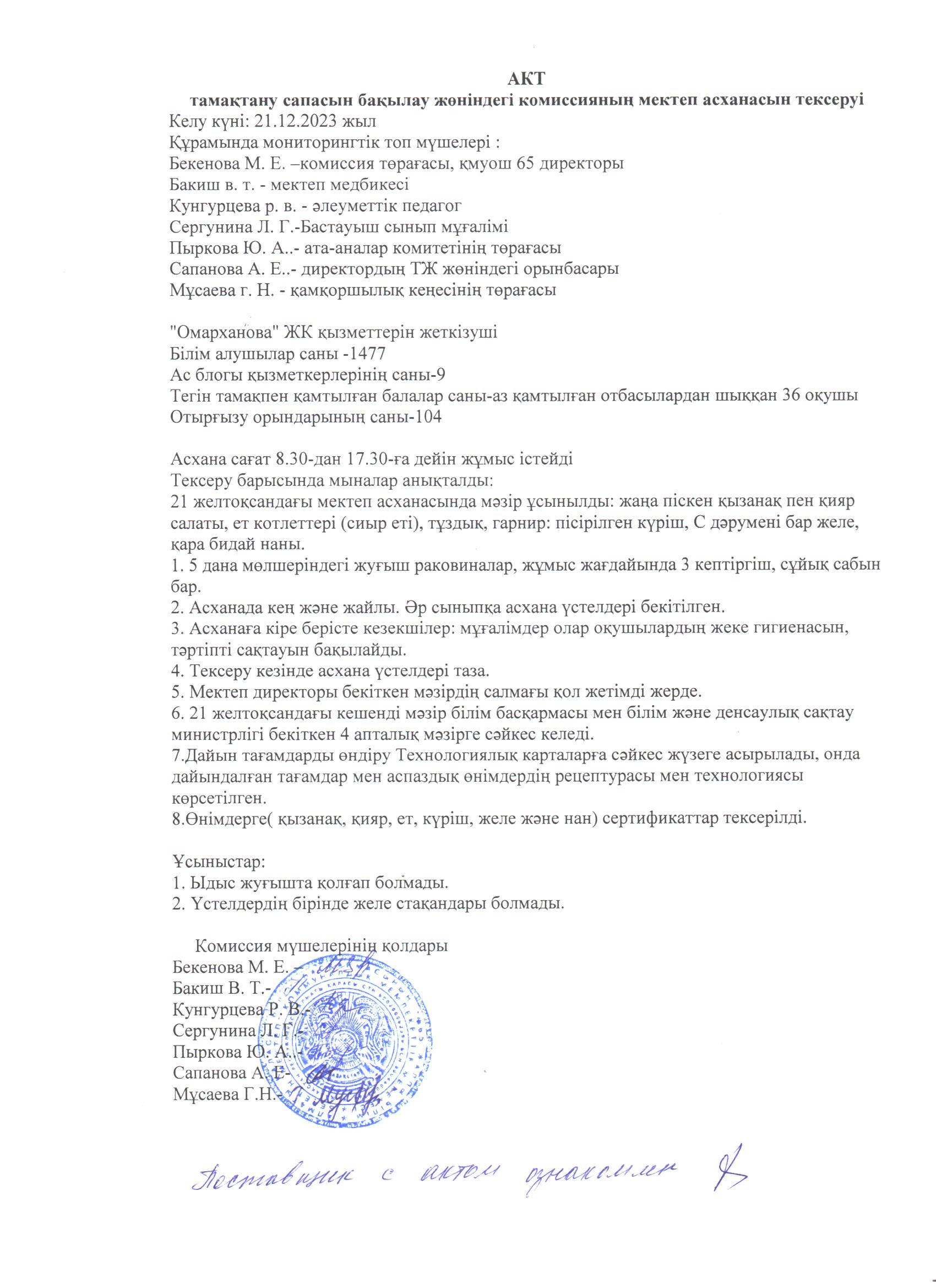 21 желтоқсан 2023 0 1 2 3 4 5 Мектеп асханасын тексеру актісі 21.12.2023ж./// Акт проверки школьной столовой 21.12.2023г.