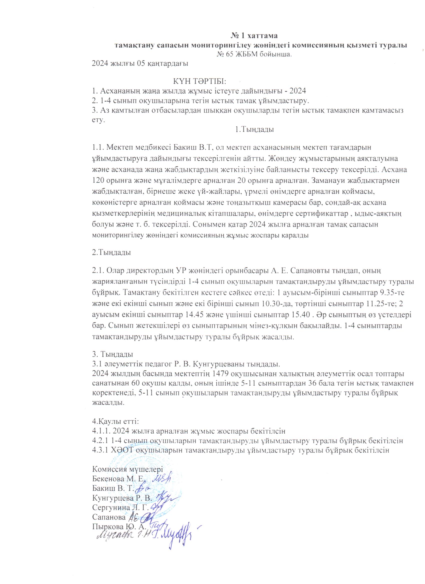 05 қаңтар 2024 0 1 2 3 4 5 Мониторинг жөніндегі комиссия отырысының 05.01.2024 ж. ХАТТАМАСЫ./// Протокол заседания бракеражной комиссии от 05.01.2024г