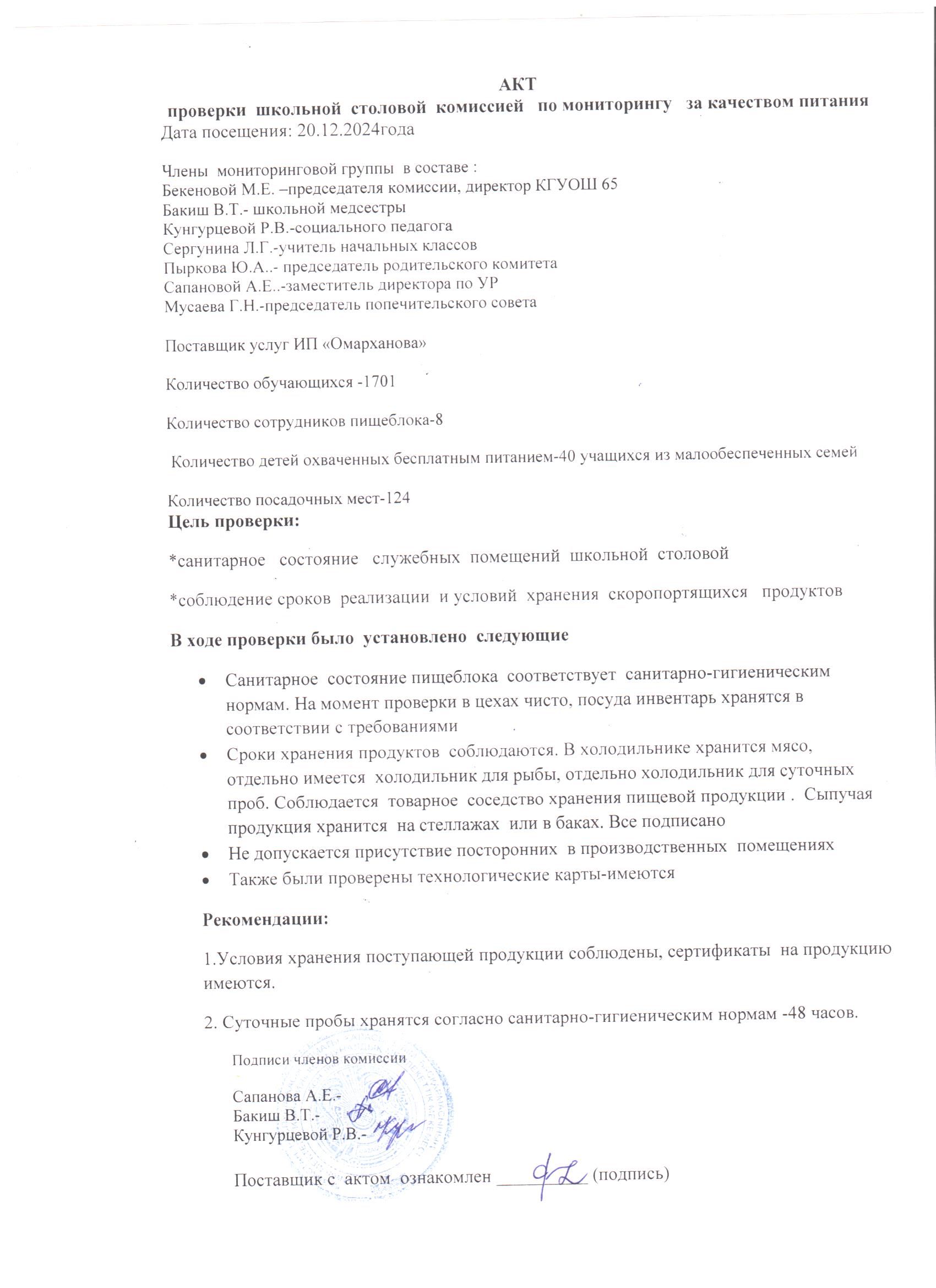 20 желтоқсан 2024 0 1 2 3 4 5 Мектеп асханасын тексеру актісі 20.12.2024 ж./// Акт проверки школьной столовой 20.12.2024г