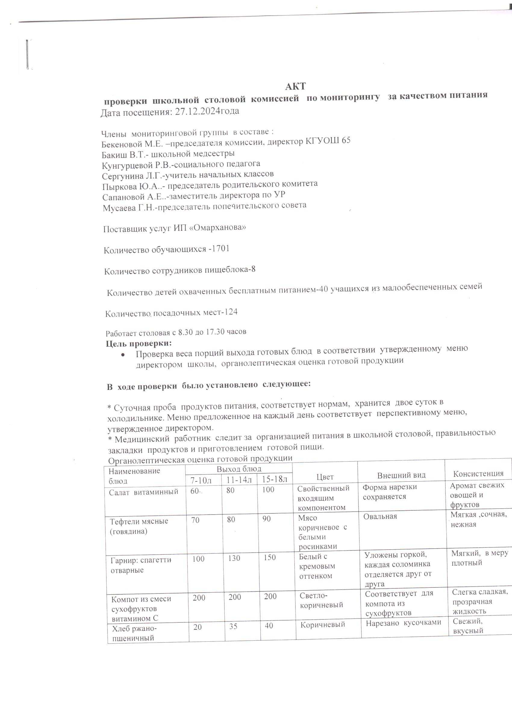 27 желтоқсан 2024 0 1 2 3 4 5 Мектеп асханасын тексеру актісі 27.12.2024 ж./// Акт проверки школьной столовой 27.12.2024г