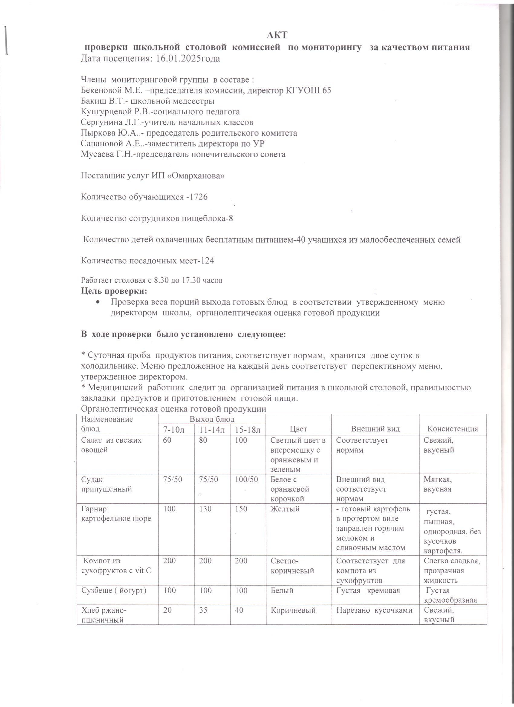 16 қаңтар 2025 0 1 2 3 4 5 Мектеп асханасын тексеру актісі 16.01.2025 ж./// Акт проверки школьной столовой от16.01.2025г.