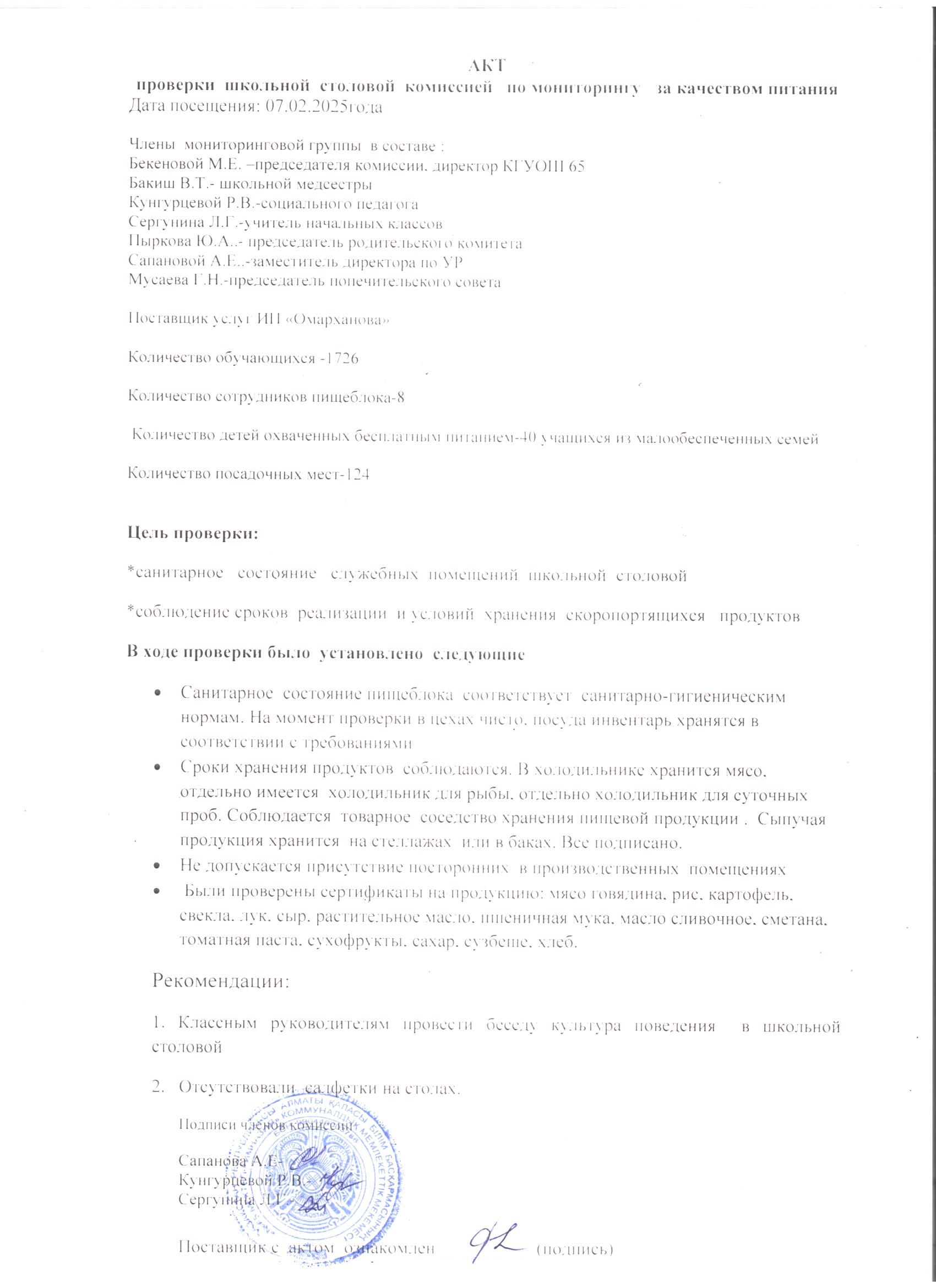 07 ақпан 2025 0 1 2 3 4 5 Мектеп асханасын тексеру актісі 07.02.2025 ж./// Акт проверки школьной столовой 07.02.2025г.