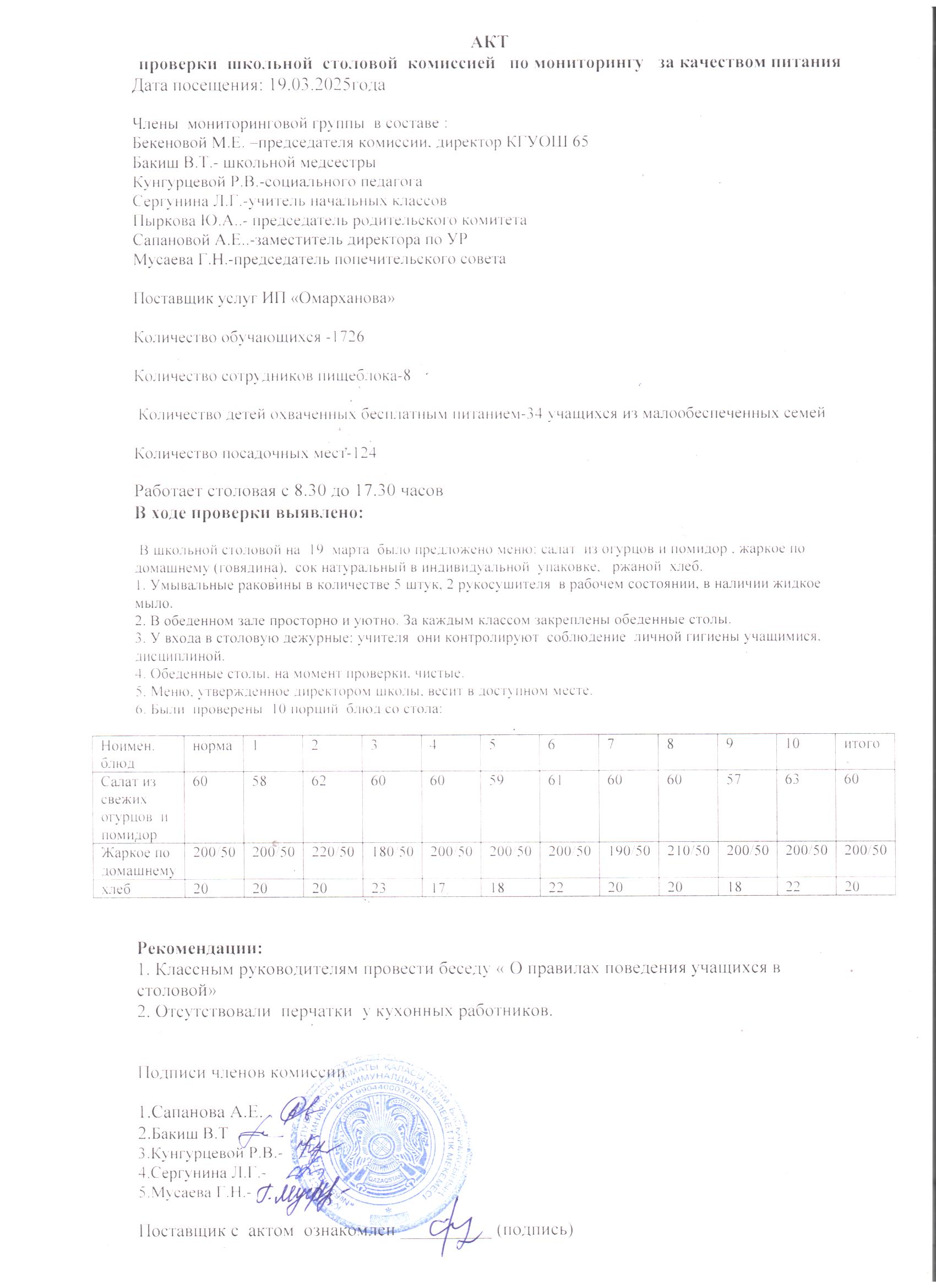 19 наурыз 2025 0 1 2 3 4 5 Мектеп асханасын тексеру актісі 19.03.2025 ж.///Акт проверки школьной столовой 19.03.2025г.