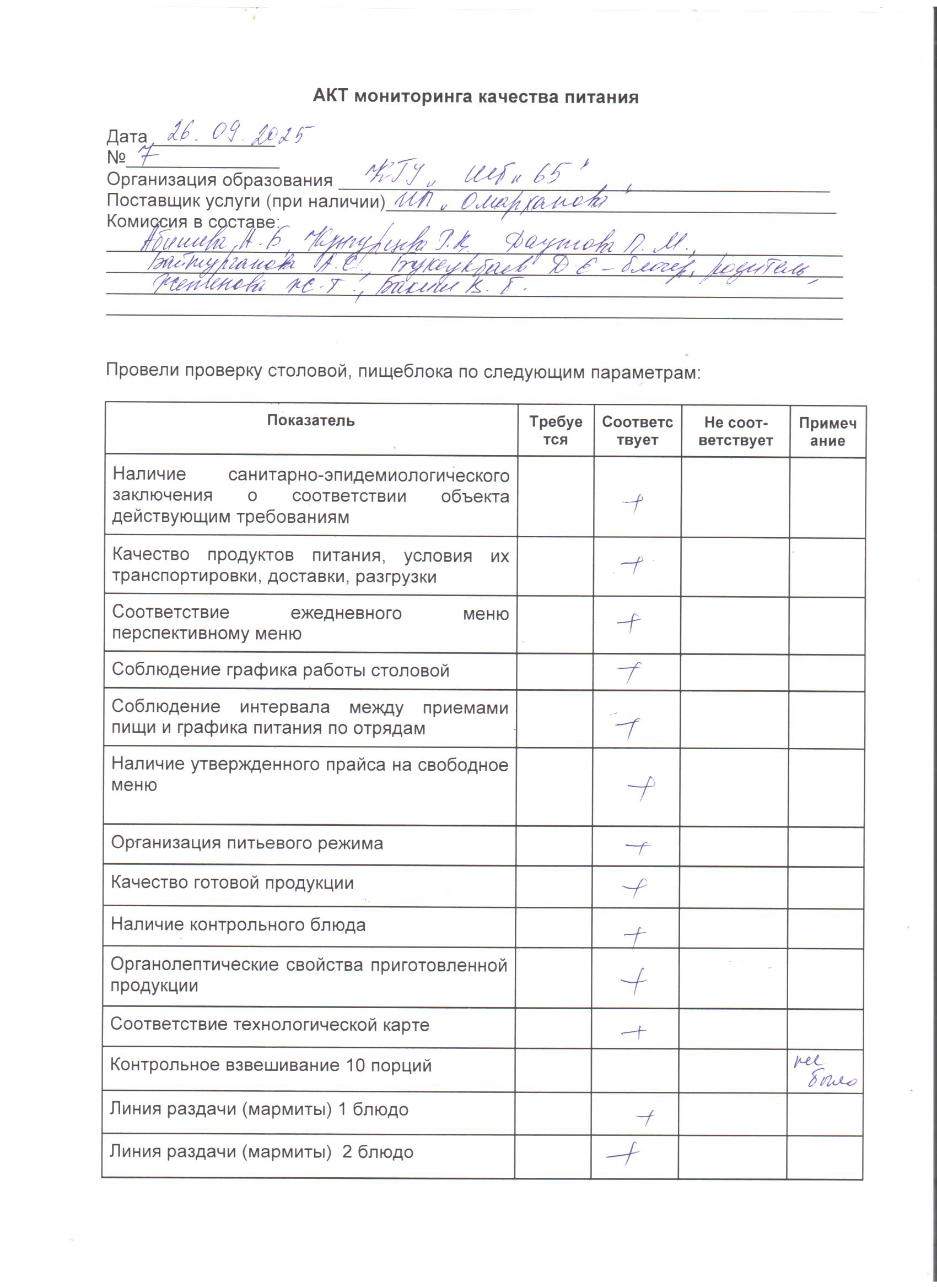 26 қыркүйек 2025 0 1 2 3 4 5 №7 Акт 22.09.2025 ж. бракераж комиссиясының мектеп асханасын тексеруі.////Акт 7 проверка школьной столовой бракеражной комиссией на 26.09.2025г